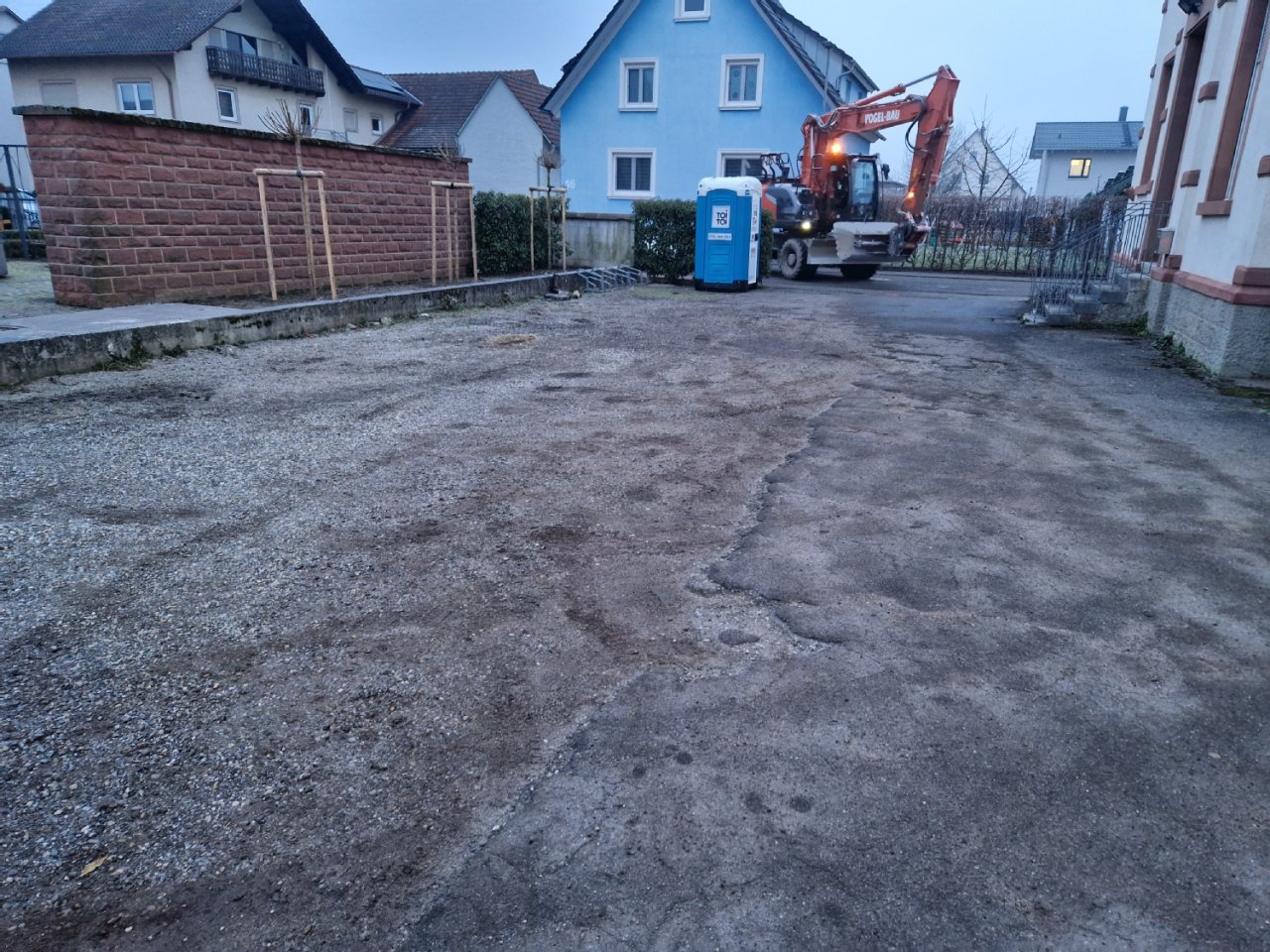 Aufmerksame Bürger haben sie schon bemerkt. Die Baustelle am Parkplatz der katholischen Kita. Die Arbeiten zur vollständigen Neugestaltung haben begonnen