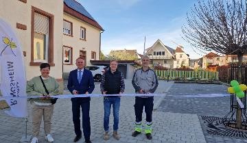 Auch bei diesem kommunalen Projekt hat der Ringsheimer Bauhof wieder stark mitgearbeitet. Ein Baum auf dem Platz, verschiedene Grünflächen und weitere Bäume als Abtrennung zum Friedhof sowie als künftige „Schattenspender“ wurden gepflanzt und gestaltet und mit einer automatischen Bewässerung versehen.