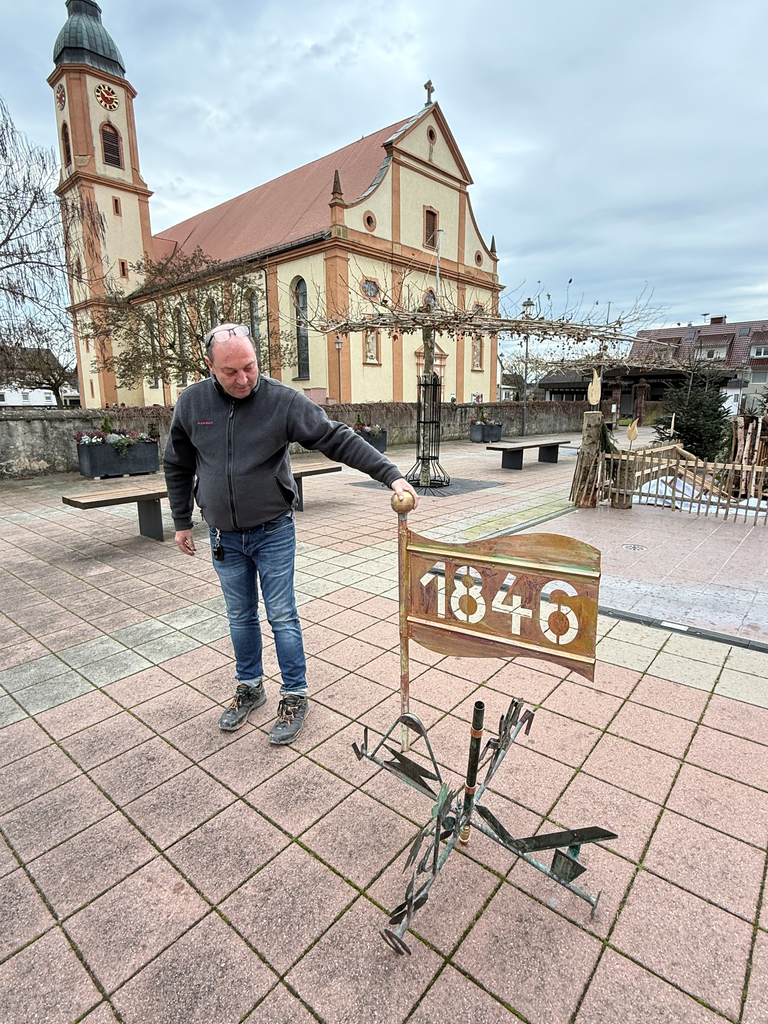 Restaurierte Wetterfahne krönt wieder das Ringsheimer Rathaus